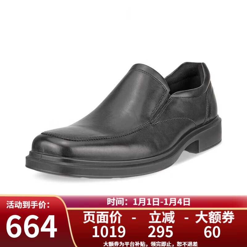 爱步(ECCO)Helsinki 2系列 赫尔辛基牛皮皮鞋一脚套休闲皮鞋男 500154-01001-黑色 42
