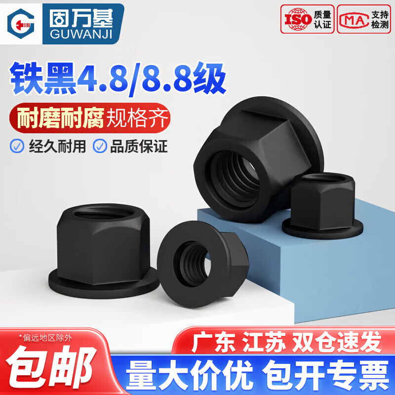 固万基4.8/8.8/12.9级高强度法兰螺母加大六角带垫螺帽发黑加厚螺丝帽 (10.9级)M10[10只]黑色45#钢