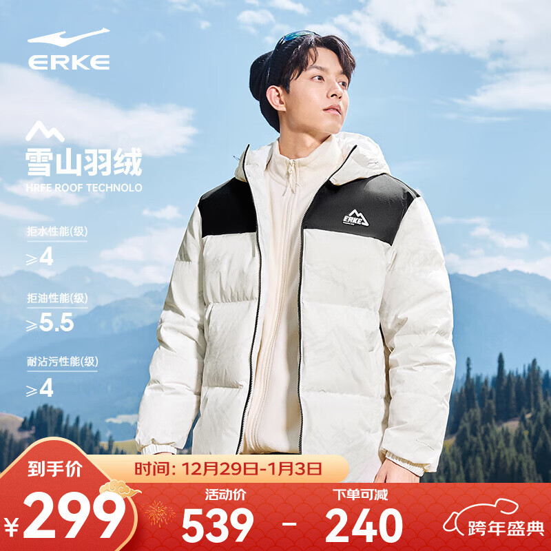 鸿星尔克四防|羽绒服男秋冬新款保暖防风防污防泼水户外休闲运动外套夹克 正白 XL