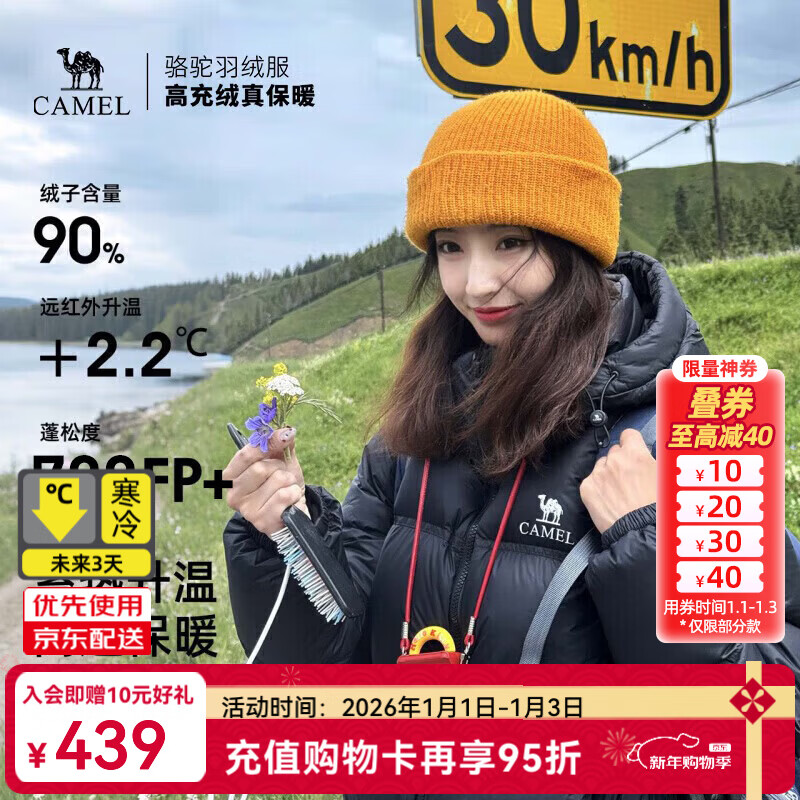 骆驼[黑钻3.0]羽绒服男90%绒秋冬保暖时尚显瘦高蓬羽绒服女 A13CAPN110A5,幻影黑 ,中性(金箔内) XL