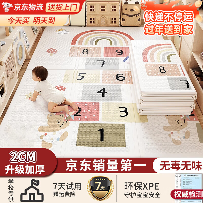 贝初众宝宝爬行垫婴儿爬爬垫折叠双面xpe家用客厅卧室儿童加厚防摔地垫 童年跳飞机【180*200*2CM】 婴幼儿无味无毒无甲醛婴儿用早教中心垫子