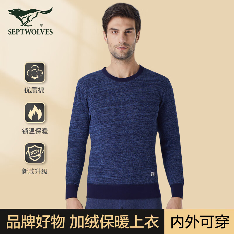 七匹狼保暖内衣男加绒加厚保暖上衣外穿针织衫男生冬季保暖套头衫 时尚款宝蓝色 XL (175) (建议130-150斤)