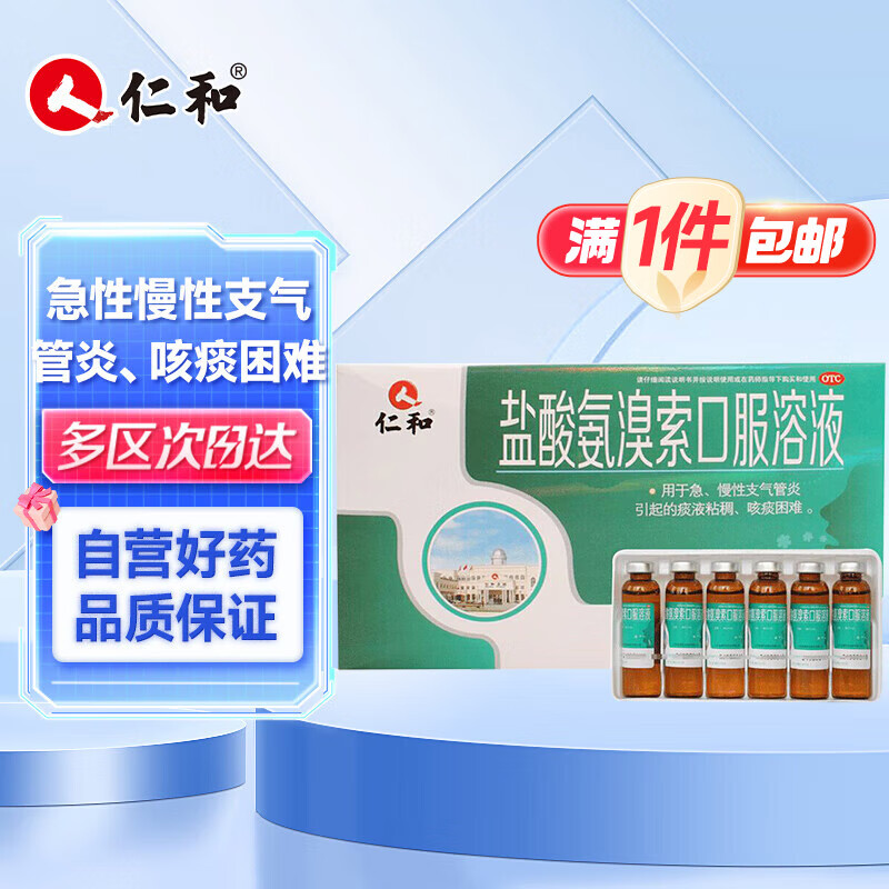 仁和 盐酸氨溴索口服溶液 0.3%*10毫升*12支/盒适用于急性慢性支气管炎痰液粘稠咳痰困难 新冠指南用药感冒咳嗽