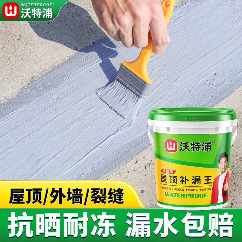 沃特浦防水涂料屋顶防水补漏材料房顶裂缝防水胶沥青王房屋楼顶防漏水胶 【水泥色 10斤 】防晒防冻单遍10平