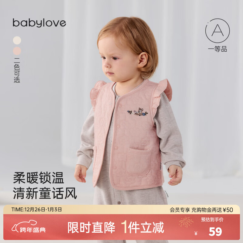 babylove女宝宝马甲秋冬婴儿薄夹棉保暖背心外出时尚飞袖纯棉坎肩 月见粉 90