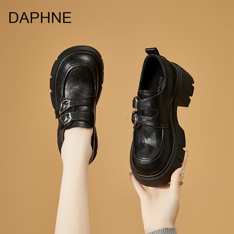 达芙妮真皮厚底乐福鞋2025秋季新款粗跟英伦风百搭单鞋爆款黑色小皮鞋 黑色 【英伦厚底-真皮时尚】 38