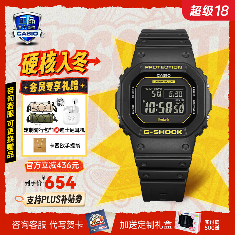 卡西欧(CASIO)手表gshock多功能方表善哉同款运动小方块送男朋友日韩表生日礼物 GW-B5600CY-1DR经典黄金眼