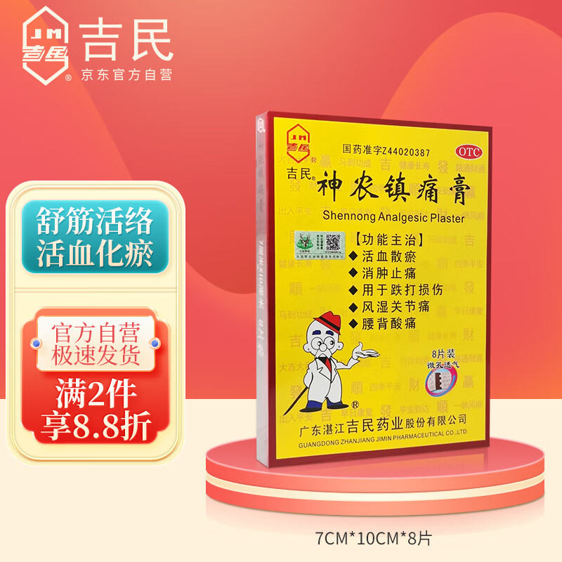 吉民神农镇痛膏7cm*10cm*8片活血散瘀消肿止痛 腰背酸痛 跌打损伤 风湿关节痛