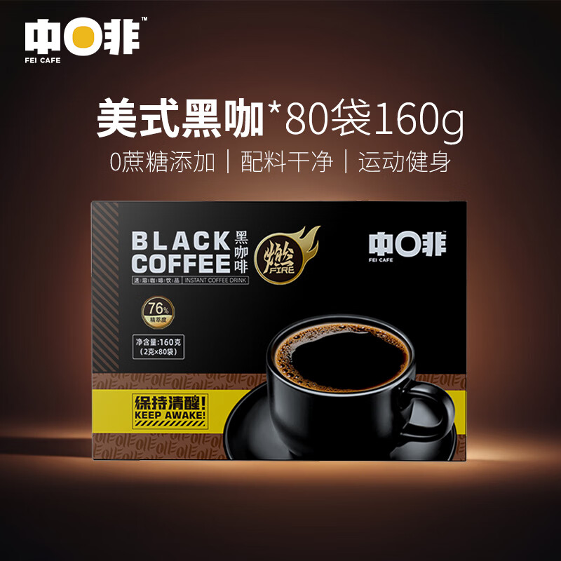中啡(ZHONGFEI) 速溶黑咖啡粉纯苦美式即饮 云南小粒咖啡 阿拉比卡固体饮料 80杯】清爽美式160g-今年10月产 2g/袋