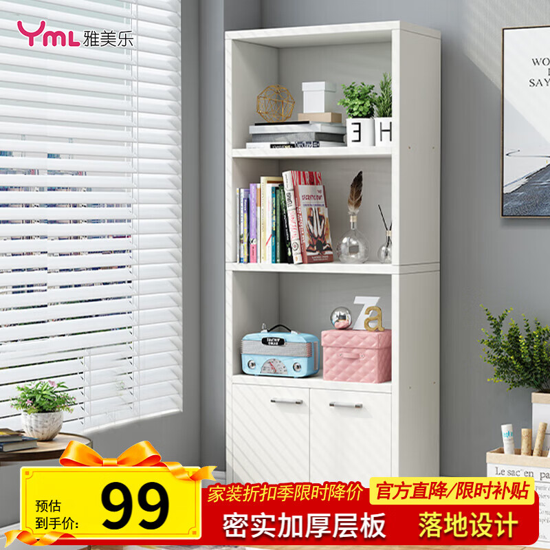 雅美乐简易书架落地置物架 自由组合客厅书房小柜子带门书柜储物柜