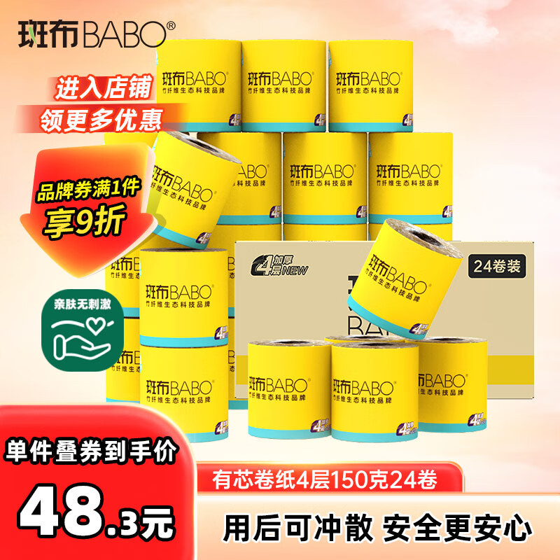 斑布有芯卷纸 4层150克*24卷 本色纸 卷纸 卫生纸 卷筒纸 纸巾 整箱