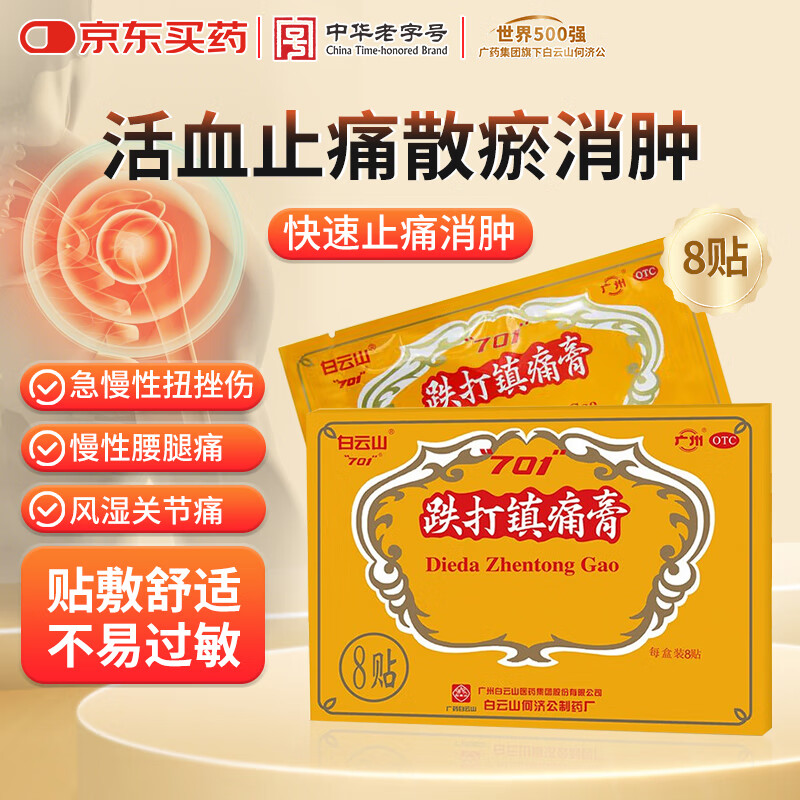 白云山 跌打镇痛膏 10cm*7cm*8贴 活血止痛 散瘀消肿 用于急慢性扭挫伤腰腿痛风湿关节痛