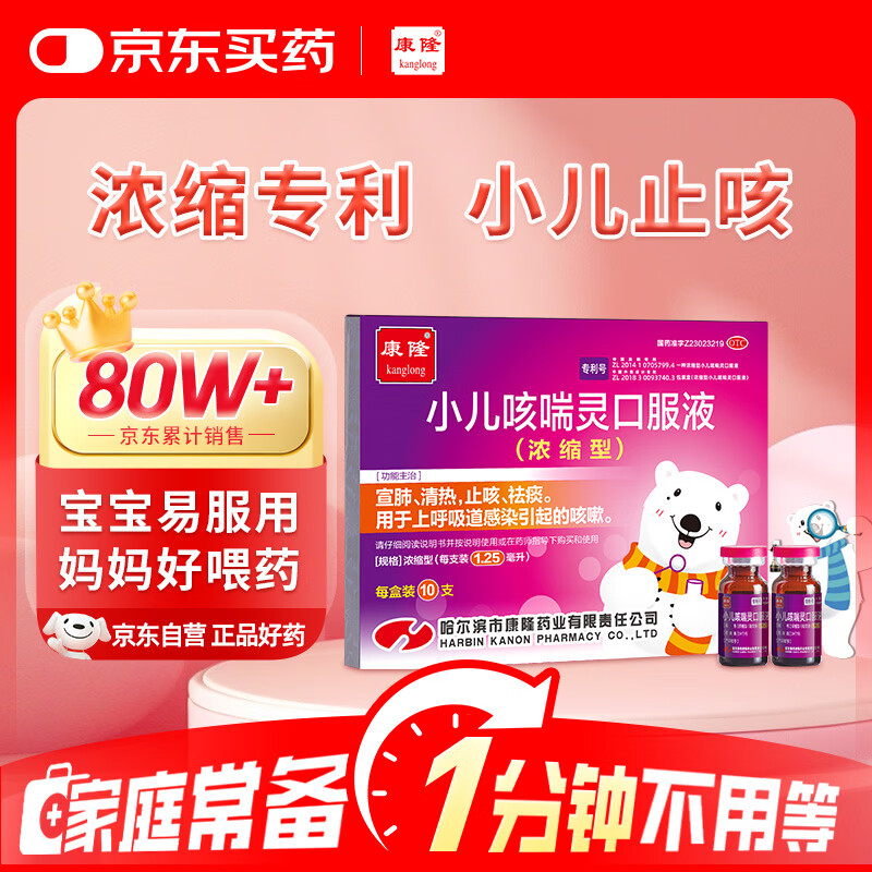 【北京儿研所同款】康隆 小儿咳喘灵口服液(浓缩型) 1.25ml*10支 宣肺清热 止咳祛痰 小儿咳嗽药