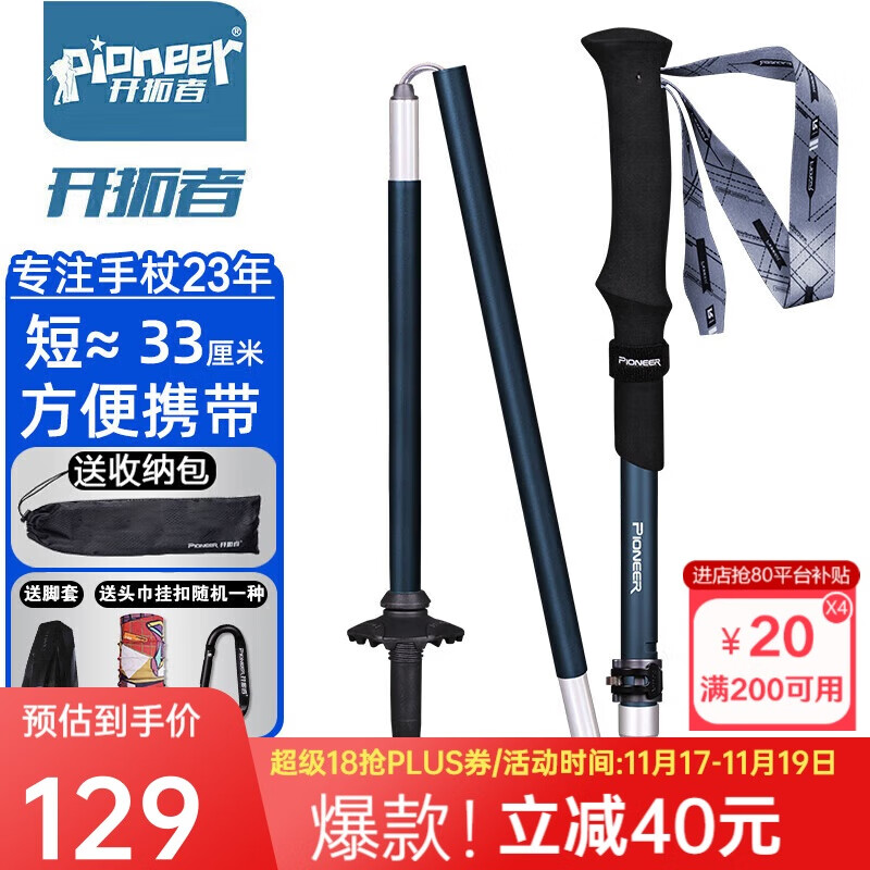 开拓者(pioneer)天狼星2系登山杖碳纤维碳素铝合金折叠式伸缩手杖户外越野拐杖