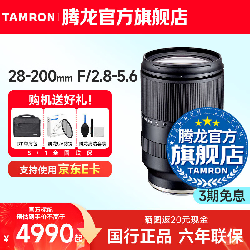 腾龙(Tamron)A071S 28-200mm F/2.8-5.6大光圈远摄大变焦28-200全画幅微单镜头28200 索尼FE卡口 官方标配【送腾龙UV滤镜+摄影单肩包+清洁套装】