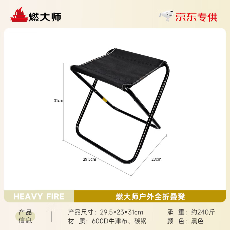 燃大师钓鱼户外折叠凳便携式火车折叠椅椅超轻小马扎露营椅子野营小板凳 全折叠款【黑色大号】
