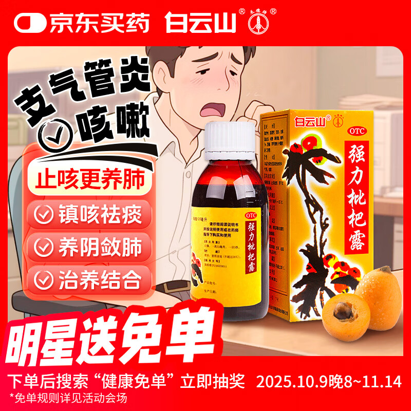 白云山强力枇杷露120ml止咳糖浆咳嗽药止咳化痰清肺枇杷膏支气管炎咳嗽京东大药房 新冠指南用药感冒咳嗽