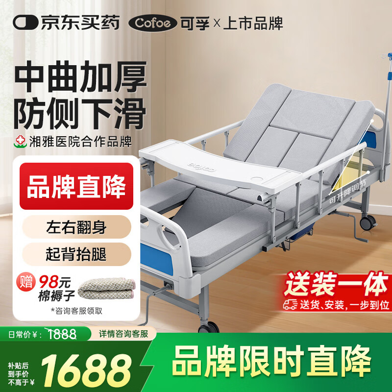 可孚手动护理床医用床老年人家用瘫痪医院病人医疗床大小便KD-BC-D05