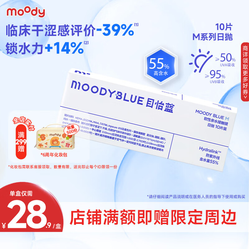 moody blueMOODYBLUE目怡蓝 隐形眼镜日抛近视透氧水凝胶10片 375度