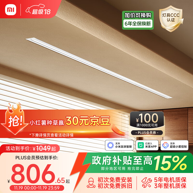 米家智能隐形晾衣机单杆 【国家补贴】小米电动晾衣架隐藏嵌入式