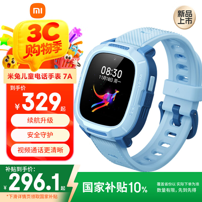小米米兔儿童电话手表7A蓝色 国家补贴 长续航高清视频4G全网通防水定位小学生初高中男女智能儿童手表