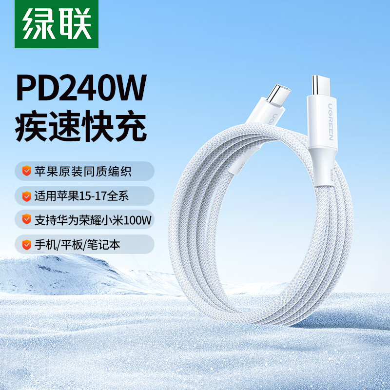 绿联PD240W双头Type-C数据线ctoc适用华为荣耀小米100W超级快充苹果17/16/15平板iPad笔记本电脑1米
