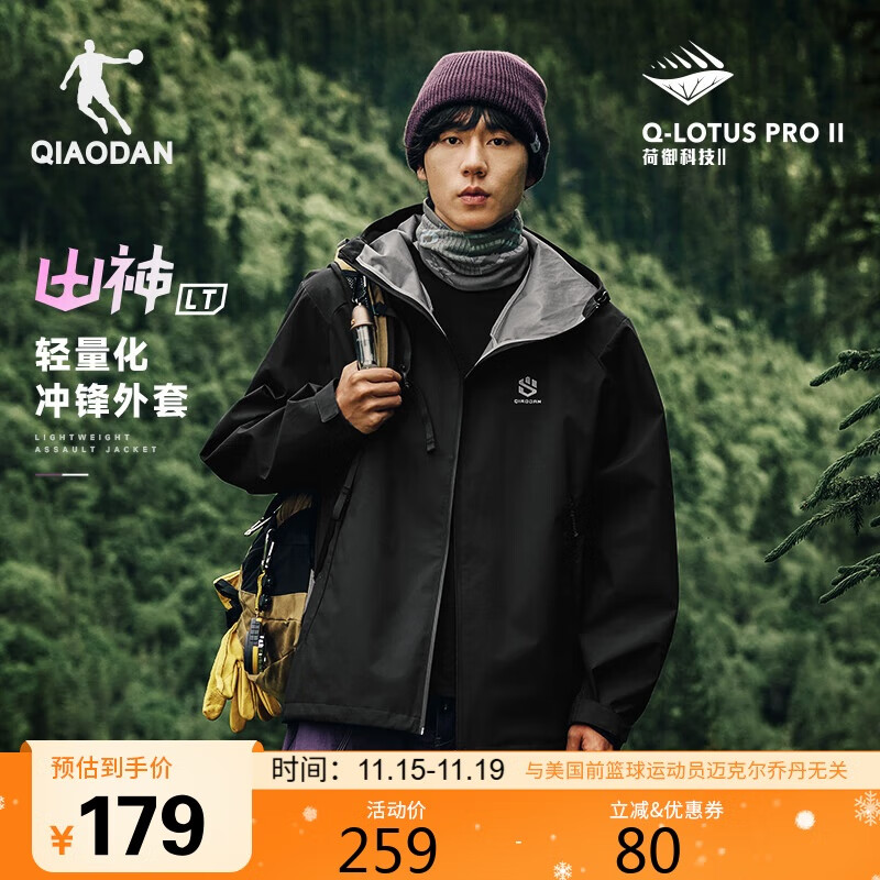 乔丹山神Lite运动外套男Oversize宽松连帽风衣男夹克户外冲锋运动服男