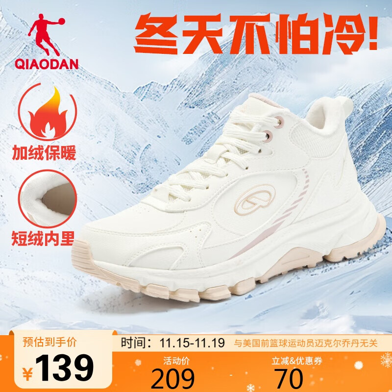 乔丹女鞋高帮棉鞋2025冬季休闲鞋革面防水加绒保暖老爹鞋运动鞋