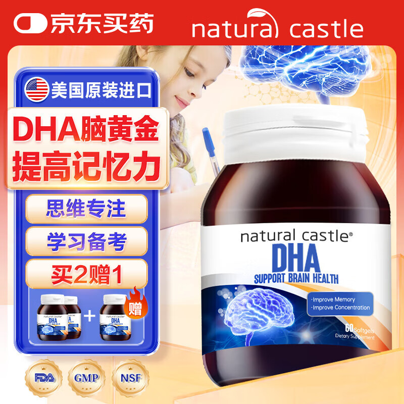 Natural Castle美国进口dha学生补脑青少年6-18岁增加记忆力专注力儿童初高中生