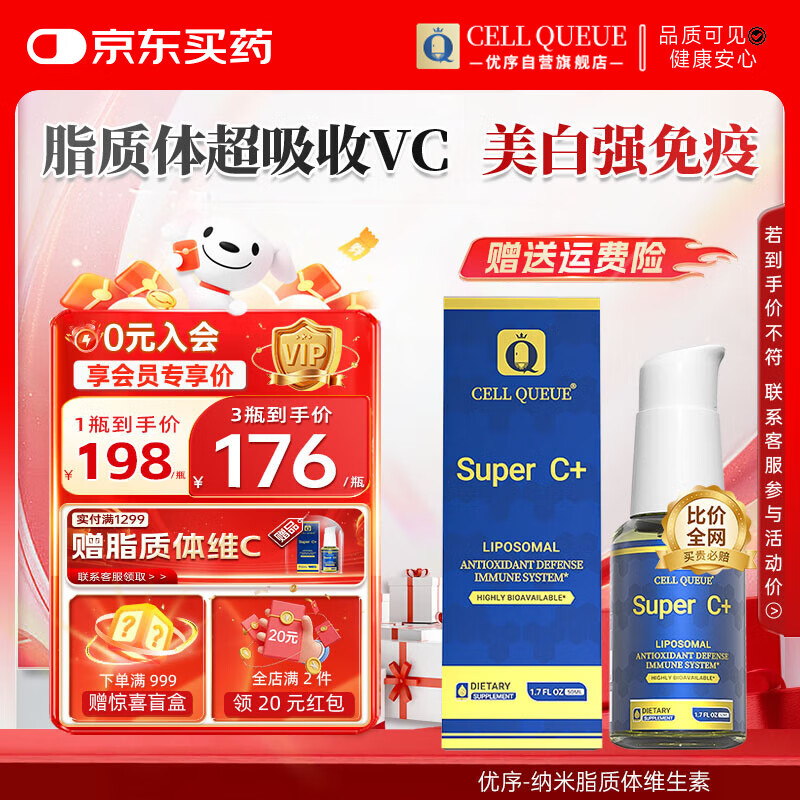 Cell Queue优序脂质体维生素c口服液体儿童25倍超吸收成人天然维C美国进口