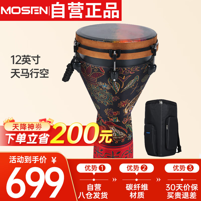 莫森(MOSEN)12英寸专业非洲鼓 碳纤维材料丽江手拍鼓 可调音时尚款 天马行空