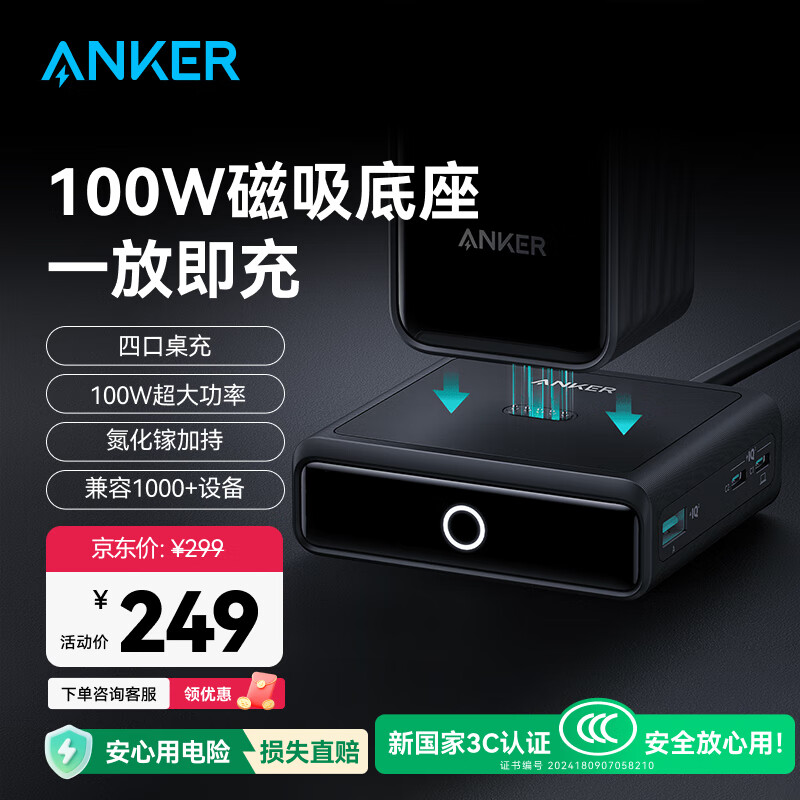 ANKER Prime安克氮化镓充电磁吸基座100W大功率快充充电器适用苹果手机电脑平板笔记本电脑iphone16