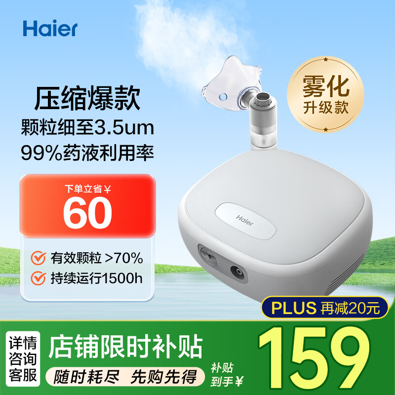 海尔(Haier)雾化机器儿童家用医用级成人老人咳嗽哮喘压缩式雾化仪吸入器AR06