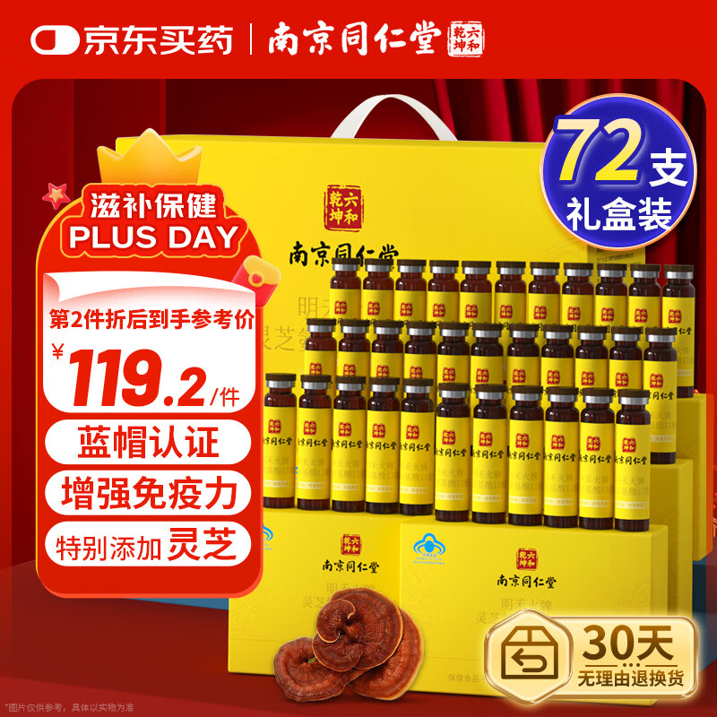 丽天承 南京同仁堂 灵芝氨基酸口服液72支增强免疫力中老年人营养品礼盒