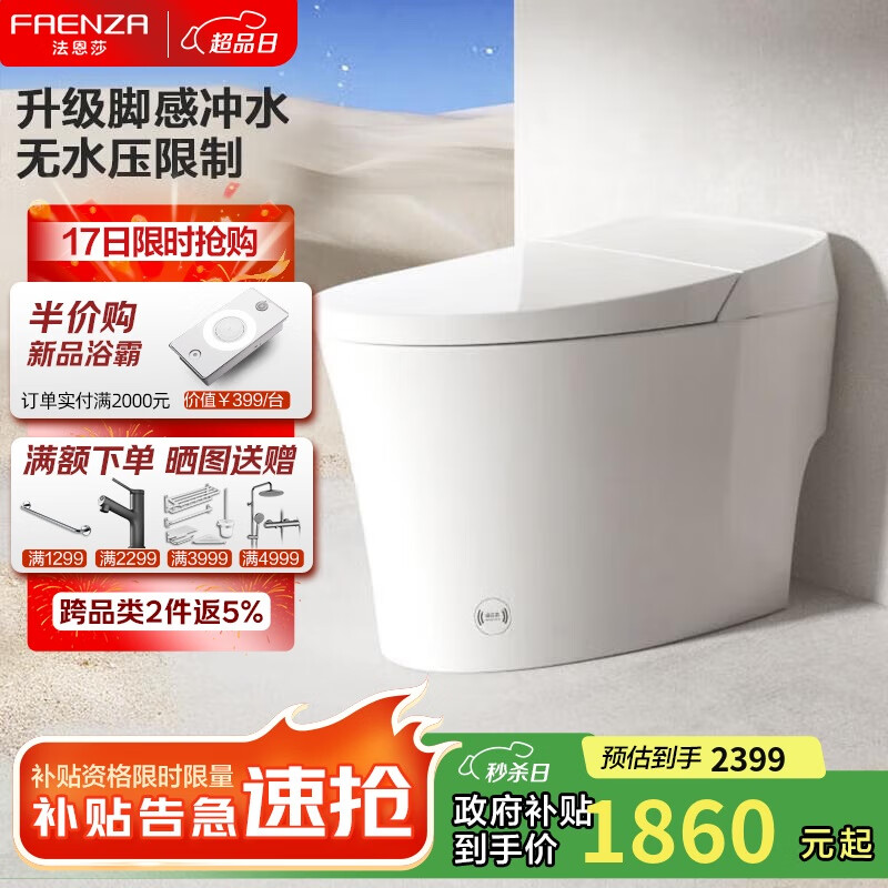 法恩莎(FAENZA)全自动智能马桶低压座圈加热虹吸脚感冲水净澜釉面座便器FEA06-GM
