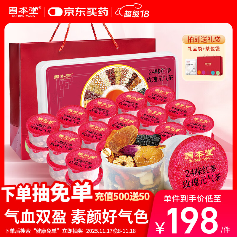 固本堂24味红参玫瑰气血茶养生茶补气血女补气养血玫瑰花茶礼盒女士茶包