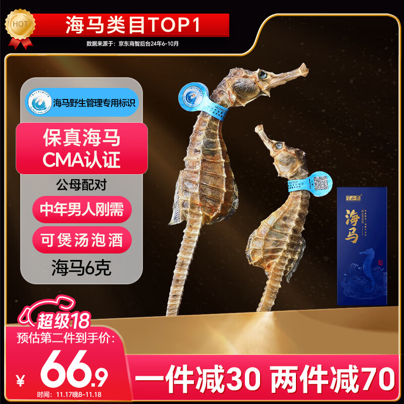 半山农 海马6克一公一母正品海马干泡酒料药中材男性滋补搭补肾壮阳持久