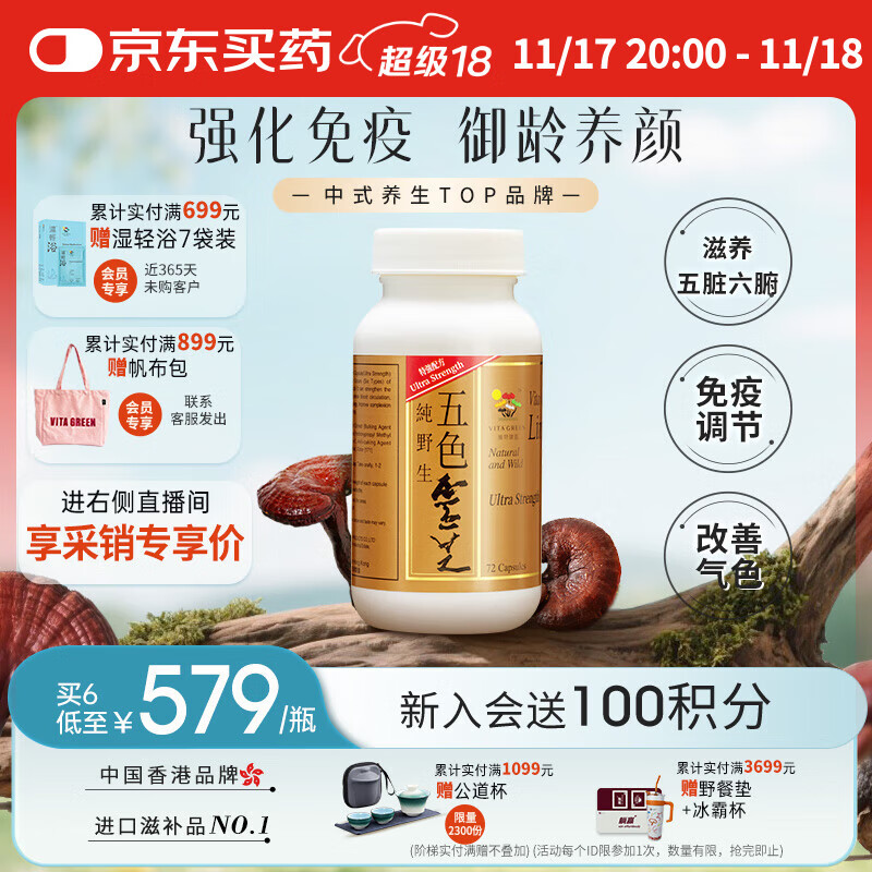 维特健灵 五色灵芝胶囊灵芝赤灵芝紫芝麦角硫因 72粒/瓶