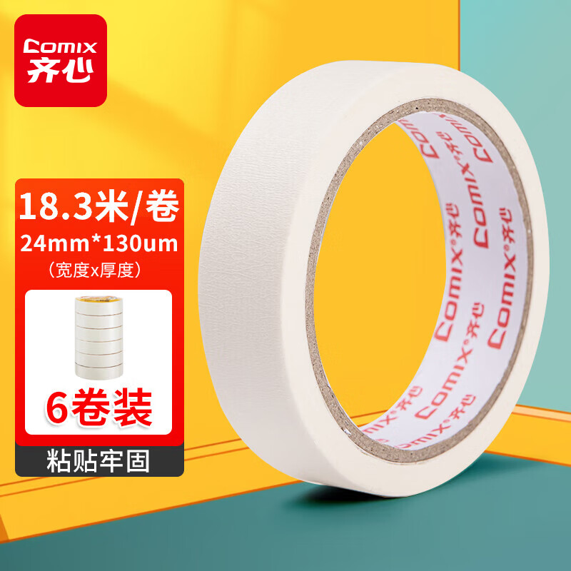 齐心(Comix)美纹胶带/装修遮蔽带/无痕纸/汽车美纹纸 宽24mm*长18.3米 6卷装 工具 JM2402-6