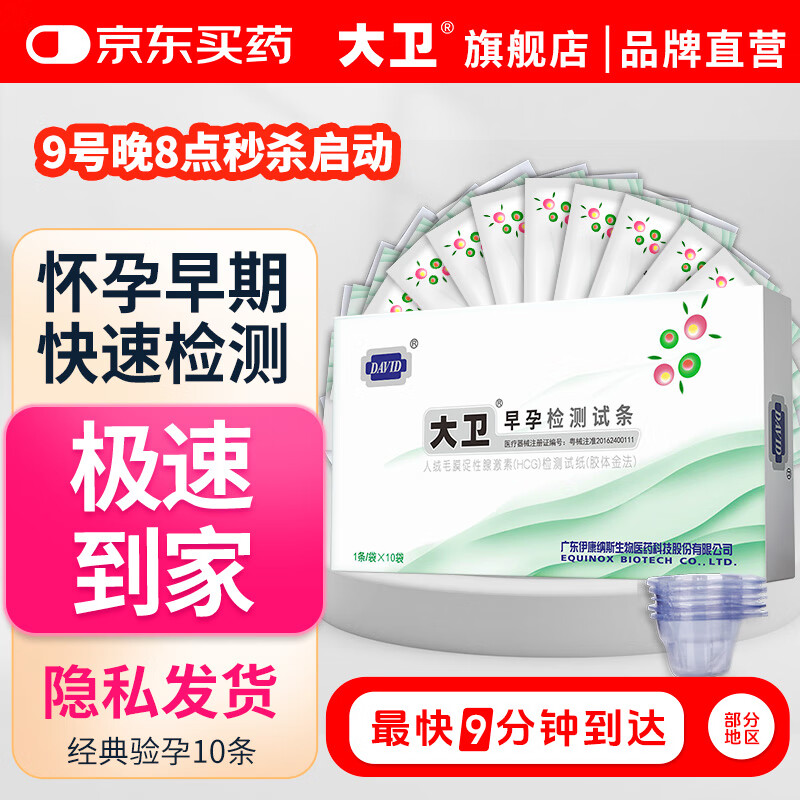 大卫 验孕棒早早孕试纸10条 快速验孕高精准测怀孕高灵敏 含尿杯