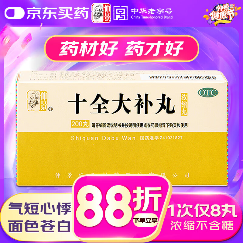 仲景 十全大补丸(浓缩丸)200丸 温补气血 气血两虚面色苍白 气短心悸头晕自汗四肢不温 非颗粒