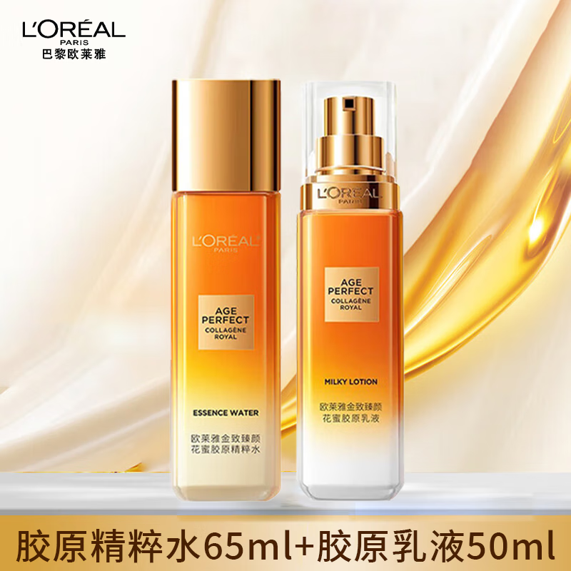 欧莱雅金致臻颜花蜜水乳霜护肤品套装小蜜罐精粹水乳液面霜爽肤水精华 花蜜胶原精粹水65ml+乳液50ml