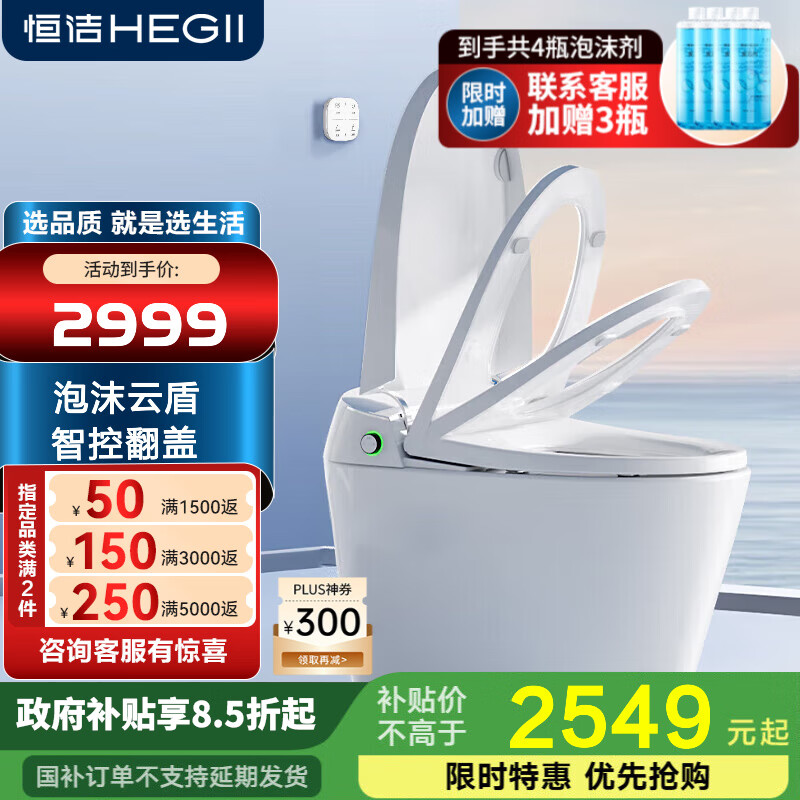 恒洁落地智能马桶一体机全自动无水压带水箱即热式坐便器翻盖翻圈系列 【泡沫盾+翻盖翻圈/大小冲】H35Pro 305/300mm