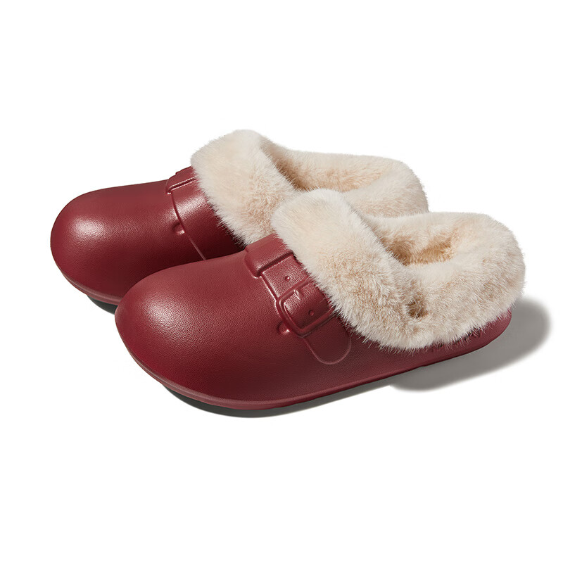 朴西女士冬季博肯可拆卸棉拖鞋复古轻盈软弹保暖外穿防滑百搭情侣棉拖 安哥拉红 40-41
