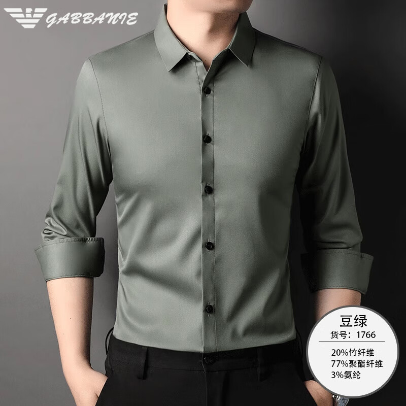 ARMANI EXCHANGE 阿玛尼长袖衬衫男春秋新款韩版潮流垂感寸衫商务休闲男士衬衣服 豆绿(1766) M 165