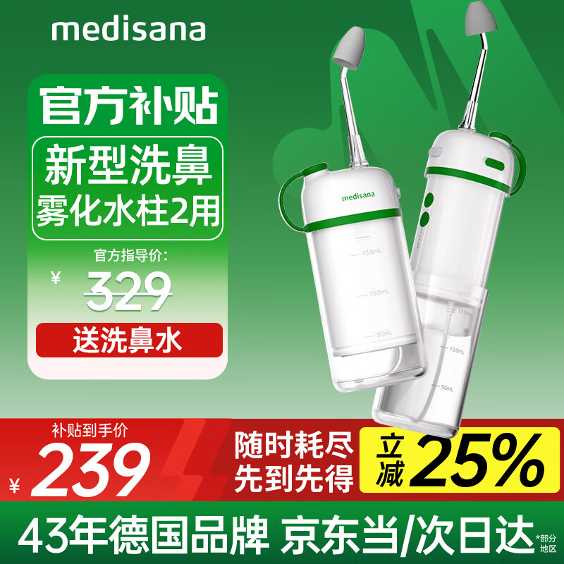 medisana德国电动洗鼻器儿童鼻腔冲洗器成人医用鼻炎过敏雾化冲鼻器NJ5260