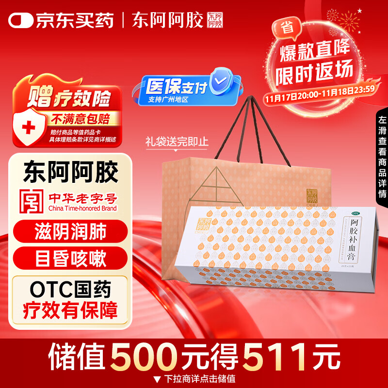 东阿阿胶阿胶补血膏 20g*20瓶 补益气血 滋阴润肺 用于气血两虚 体弱目昏 虚劳咳嗽