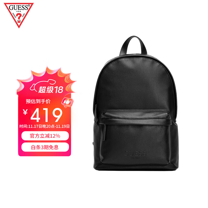 GUESS双肩包男大容量学生电脑包简约轻便百搭书包通勤女背包七夕节礼物