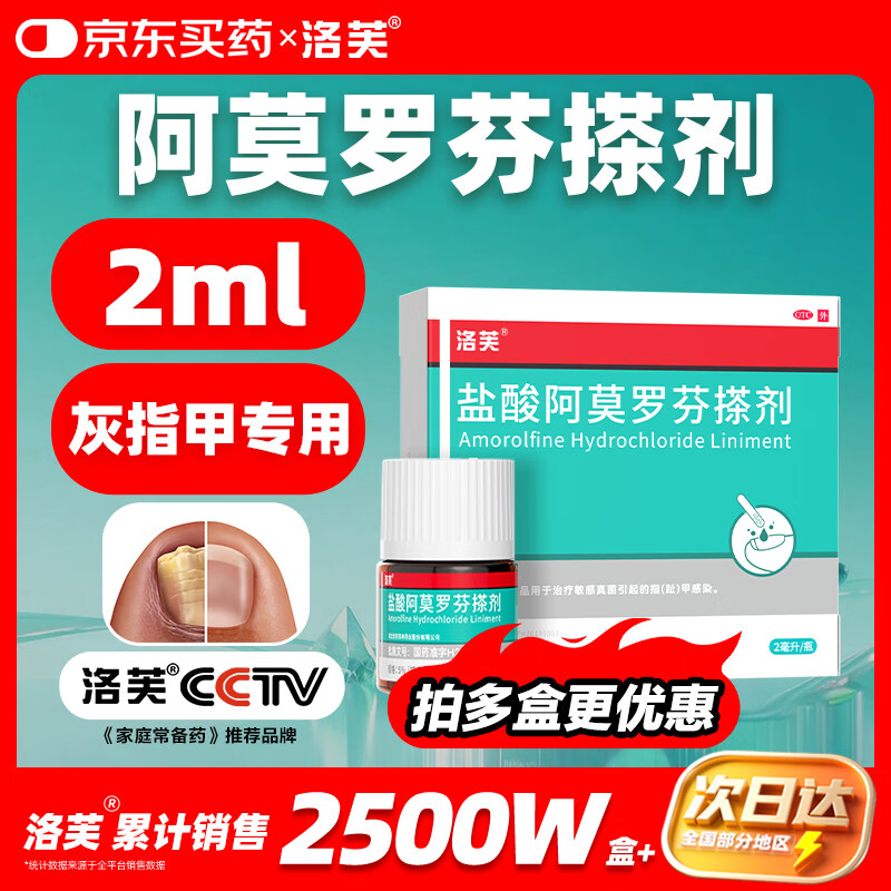 洛芙盐酸阿莫罗芬搽剂5%*2ml/盒治疗灰指甲专用药京东自营指甲增厚发黄变厚变空真菌感染正品皮肤用药擦剂
