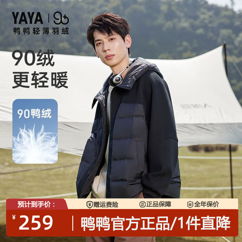 鸭鸭(YAYA)【90+系列】冬季轻薄款情侣羽绒服时尚运动休闲短款羽绒保暖外套 黑色 M 【110-130斤】